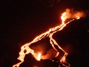 El cono principal del volcán se derrumbó parcialmente ayer, mientras continúan los grandes derrames de lava.