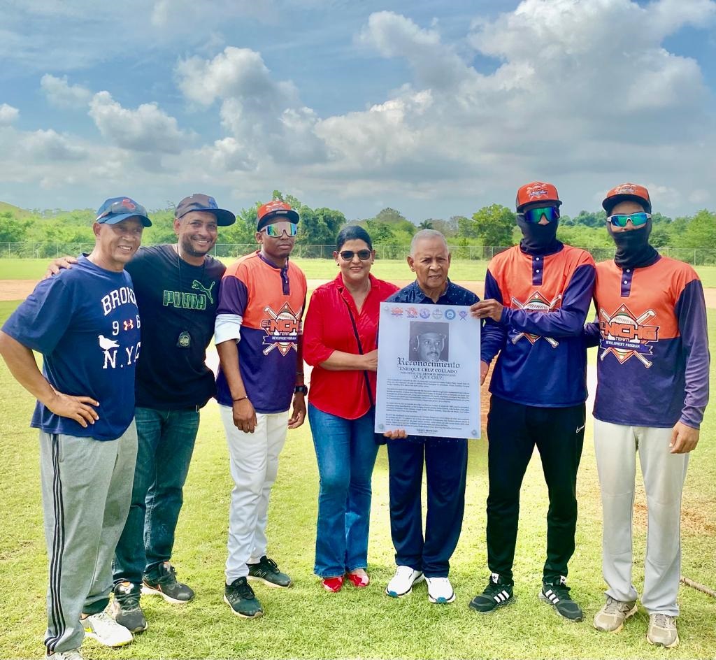 Previo al inicio del partido los directivos de la BPL reconocieron la trayectoria deportiva y ciudadana del inmortal del béisbol Enrique -Quique- Cruz.