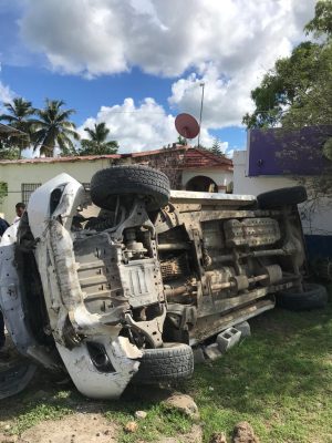 Los dos hombres y la mujer iban a bordo de la camioneta Isuzu de color blanco, la cual dio varias vueltas hasta salir de la mencionada carretera y caer en un terreno de una casa.