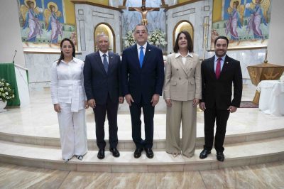 El doctor Leonardo Aguilera, presidente ejecutivo de Banreservas, estuvo acompañado en el oficio religioso por Ian Rondón, vicepresidente ejecutivo de AFI Reservas y miembros de los organismos directivos de esa entidad.