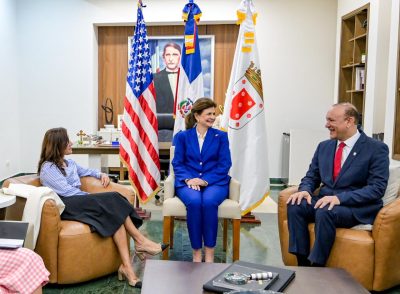 EL NUEVO DIARIO, SANTIAGO DE LOS CABALLEROS.- El alcalde de Santiago, Ulises Rodríguez, recibió la visita de la embajadora de los Estados Unidos en el país, Leah Campos, y de la vicepresidenta Raquel Peña, en un encuentro donde dialogaron sobre el crecimiento y posicionamiento de Santiago como capital de la región norte.
