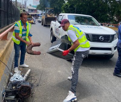“Estas metaleras provocaban un desorden considerable al obstruir vías y aceras, afectando la seguridad y movilidad de los ciudadanos”, explicó Sanz, al momento de apuntar que las brigadas del ayuntamiento se apoyaron en la utilización de una pala mecánica y varios camiones.