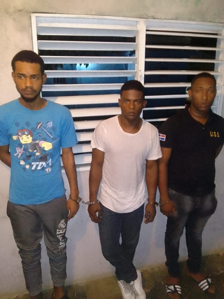 Los detenidos son Yerki José Rondón, Víctor Alfredo Encarnación Montas y Juan Arturo Tapia Santana, quienes se trasladaban la madrugada de este sábado a bordo de una yipeta color blanco y fueron sorprendidos por los agentes policiales que hacían labores de patrullaje preventivo.