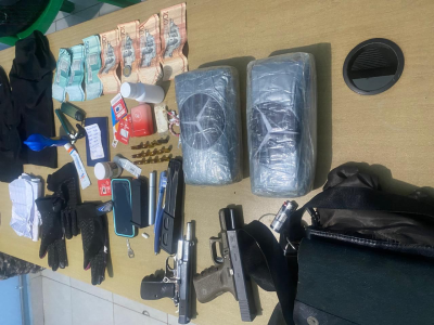 De acuerdo con un comunicado, durante la actuación policial fueron ocupados dos kilogramos de un polvo blanco, presumiblemente cocaína, envueltos en cinta adhesiva, así como dos armas de fuego ilegales, una pistola Glock, calibre 9mm, con su cargador y siete cápsulas, y otra Browning, calibre 9mm, con un cargador de capacidad para 30 cápsulas.