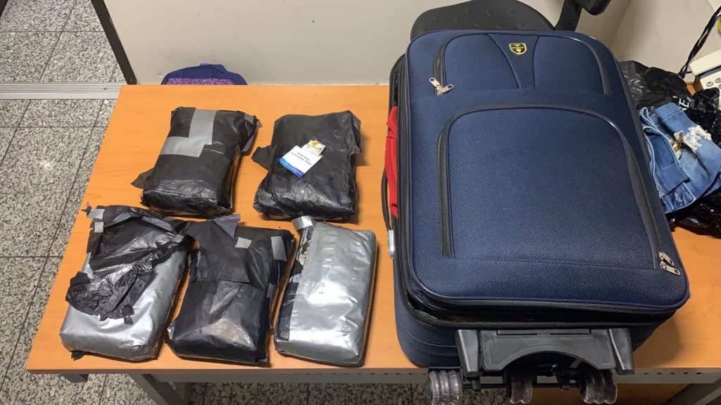 El reporte de la entidad antinarcóticos manifiesta que tras inspeccionar el equipaje de la extrajera encontraron dentro de una especie de frazada, los cinco paquetes de la sustancia, envueltos en papel carbón y cinta adhesiva.