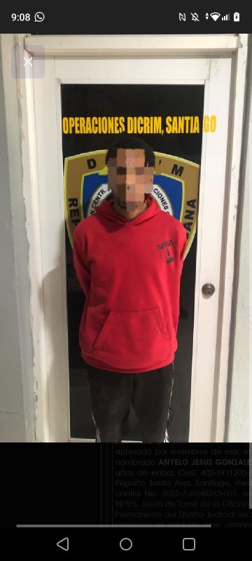 De acuerdo con la institución del orden, el detenido es Anyelo Jesús González Liriano “El Secre”, de 23 años, residente en Santiago, quien fue arrestado mediante la orden judicial No. 2025-AJ0048263-001.