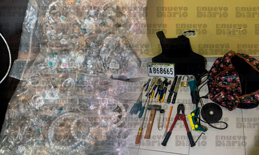 Al ser arrestado, añadió la uniformada, a Ransel Jiménez se le ocuparon dos fundas con prendas de plata con un peso aproximado de 9,220 gramos, un chaleco antibalas, múltiples herramientas y una placa de vehículo. Junto a las evidencias, será puesto a disposición de la justicia.