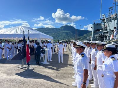 La ceremonia de bienvenida estuvo encabezada por el comandante de la Zona Naval Norte de la ARD, capitán de navío Moisés Reyes Naveo, junto al comandante de la Capitanía de Puerto, capitán de navío Antonio Miguel Parra Brito y el contralmirante (r) Luis Rodolfo Valentino Canot Rosa.