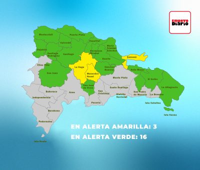De acuerdo con el último boletín del COE, las provincias que se mantienen en alerta amarilla son La Vega, Monseñor Nouel y Samaná.