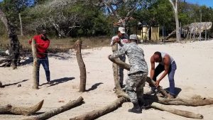 Miembros de la Armada de la República Dominicana (ARD), acompañados por empleados de la Junta Distrital de esa localidad perteneciente Municipio de Luperón, quitaron los palos y alambres que fueron colocados por personas no identificadas en la misma arena de la referida playa.