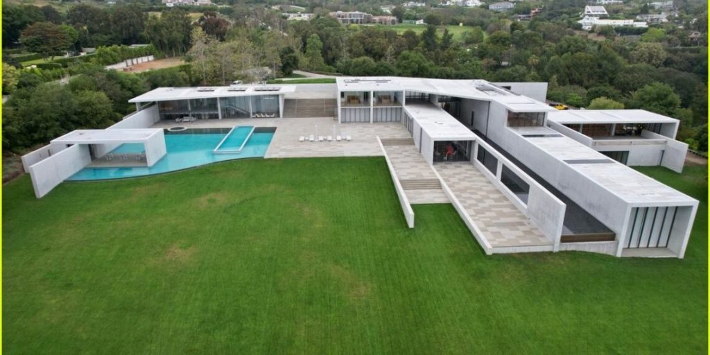 La nueva vivienda de la exitosa pareja es considerada una joya arquitectónica diseñada por el maestro japonés Tadao Andose y se encuentra en un acantilado de 3,2 hectáreas. Era propiedad del coleccionista de arte William Bell y tomó casi 15 años construir su estructura de hormigón.