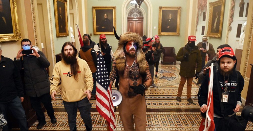El Departamento de Justicia sostiene que Chansley fue una de las primeras 30 personas que entraron al Capitolio y que luego fueron seguidas por cientos.
