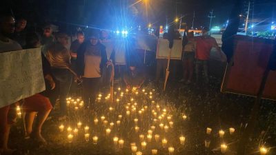 Con velones encendidos, pancartas y banderas negras, los residentes expresaron su indignación por lo que consideran un prolongado abandono gubernamental.
