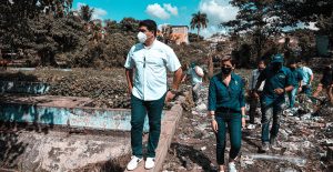 Durante la caminata Felipe Suberví estuvo acompañado del alcalde de Santo Domingo Este, Manuel Jiménez y la encargada de la Unidad Ejecutora de Proyectos, Marcelle Ríos.