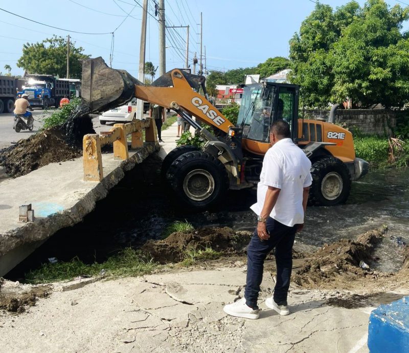 Las acciones preventivas y de saneamiento fueron autorizadas por el alcalde Diómedes Roque García (Roquelito), quien de manera personal estuvo supervisando la jornada de equipos pesados en la cañada ubicada en la avenida que conecta los dos muelles.