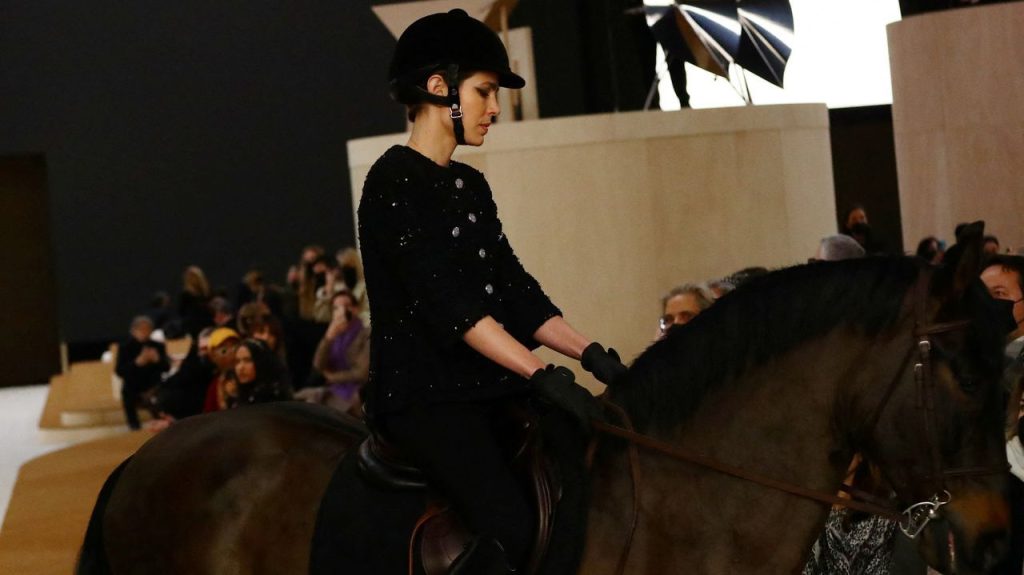 Vestida con un traje de hípica azul marino de Chanel, con la chaqueta de tweed típica de la firma, Casiraghi, abrió el pase para la primavera-verano 2022 y salió a saludar al final junto a la diseñadora Virginie Viard y el artista contemporáneo francés Xavier Veilhan, creador del decorado erigido frente a la Torre Eiffel.