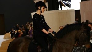 La joven fusionó este martes en un mismo acto dos de sus pasiones: la hípica, deporte que practica desde pequeña, y la moda, que la ha llevado a protagonizar campañas para otras casas de renombre, como Gucci.