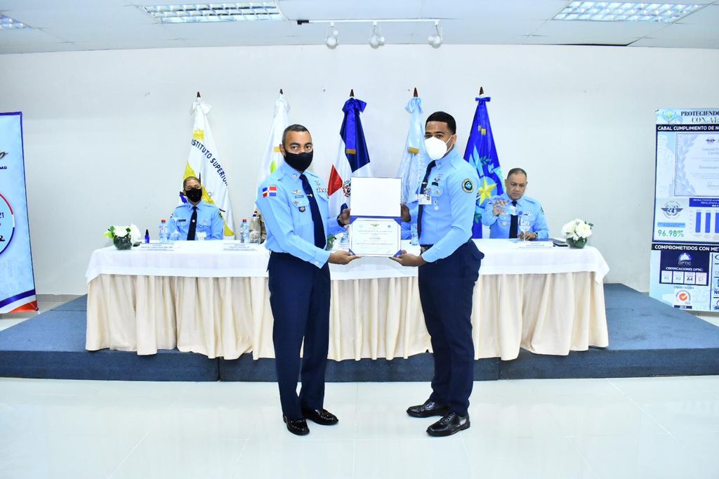 Las palabras de agradecimiento fueron expresadas por el coronel Parac. Héctor Castillo Moronta, FARD, en representación de los 111 graduados que se dividen en 7 cursos: Instrucción en Gestión de la Seguridad (13), Instrucción Básica para el personal de seguridad de aeropuerto(40), Instrucción en Manejo de Crisis de Seguridad de la Aviación (26), Gestión de Riesgo (8), Instructores en Seguridad de Aviación (7), Básico Creole (13), Ingles Intensivo (4).