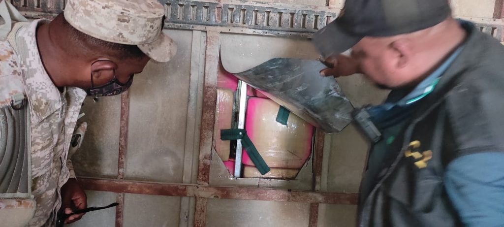 El camión fue trasladado hacia la Base de Operaciones de Jimaní, y en coordinación con el Ministerio Público fue requisado, decomisando en el interior de un túnel prefabricado para tales fines, bajo placas de aluminio, la referida cantidad de pacas, con un peso de 430 libras, a confirmar por el Instituto Nacional de Ciencias Forenses (Inacif).