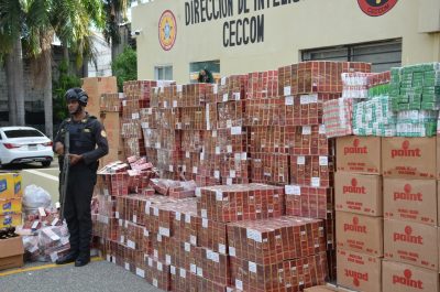 EL NUEVO DIARIO, SANTO DOMINGO .-El Cuerpo Especializado de Seguridad Fronteriza Terrestre (CESFronT) entregó este lunes al Cuerpo Especializado de Control de Combustibles y Comercio de Mercancías (Ceccom), 1,026,100 cigarrillos de diferentes marcas y 7,633 unidades de diversas bebidas alcohólicas, que fueron incautadas en el mes de diciembre, en los distintos puntos Fronterizos, y que serían introducidas al país de manera irregular.