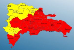 El COE indicó que la alerta roja es para las provincias San Pedro de Macorís, Hato Mayor, La Romana, Samaná, María Trinidad Sánchez, La Altagracia, San Cristóbal, El Seibo, El Gran Santo Domingo, Barahona, Peravia y San José de Ocoa.