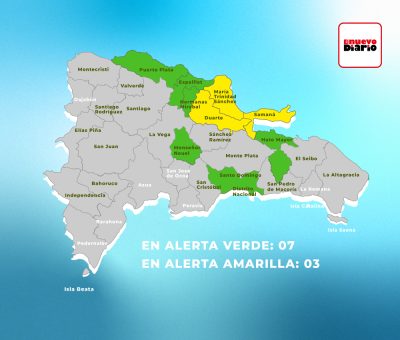 En alerta verde están: Santo Domingo, Distrito Nacional, Hermanas Mirabal, Puerto Plata, Monseñor Nouel, Espaillat y Hato Mayor.