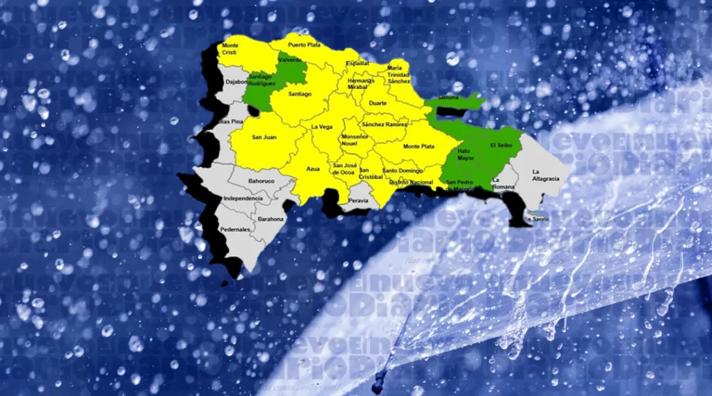Mientras que las provincias en alerta verde son Hato Mayor, Santiago Rodríguez, El Seibo, Valverde, San Pedro Macorís y Samaná.