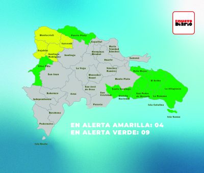 Mientras que en alerta verde están: Puerto Plata, Elías Piña, Distrito Nacional, San Pedro de Macorís, El Seibo, Santo Domingo, La Romana, Hato Mayor, y La Altagracia.