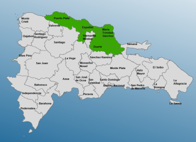 De acuerdo con el informe del organismo, las provincias bajo alerta son María Trinidad Sánchez, Espaillat, Duarte y Puerto Plata; asimismo, la descontinúa para Hermanas Mirabal, Valverde, Monte Plata, Santiago Rodríguez y Samaná.