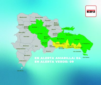 Mientras, que en alerta amarilla se encuentran Santiago, Monseñor Nouel, San José de Ocoa, Monte Plata, Hato Mayor, La Vega, El Seibo, La Altagracia y Samaná.