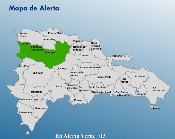 Las provincias en alerta son: Santiago, Dajabón y Santiago Rodríguez.
