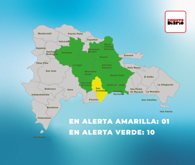 De acuerdo con el COE, la provincia en alerta amarilla es San Cristóbal, mientras en verde se encuentran Monseñor Nouel, Monte Plata, Santiago, Distrito Nacional, María Trinidad Sánchez, San José de Ocoa, La Vega, Sánchez Ramírez, Duarte y el Gran Santo Domingo.