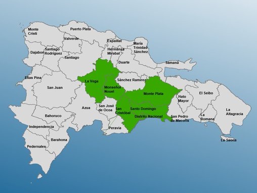 Las provincias en alerta verde son: Monte Plata, San Cristóbal, La Vega, Monseñor Nouel, Santo Domingo y el Distrito Nacional.