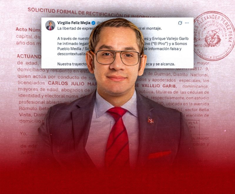 EL NUEVO DIARIO, SANTO DOMINGO.– El comunicador Virgilio Aníbal Feliz Mejía informó este jueves que a través de sus abogados procedió a intimar legalmente al comunicador Eduardo Sánchez Tolentino, conocido como “El Piro” y al medio digital Somos Pueblo Media / Somos Pueblo RD, por la presunta difusión de información falsa y descontextualizada en su contra.