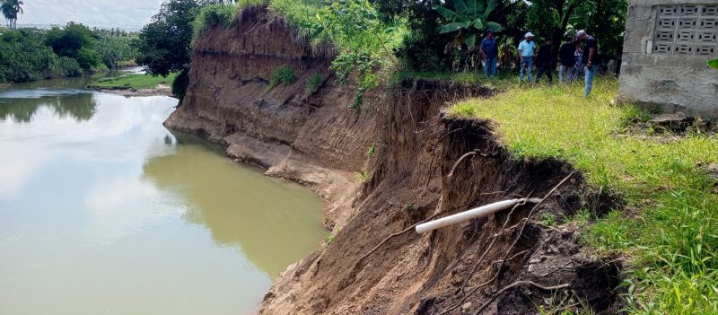 EL NUEVO DIARIO, LA VEGA. – Residentes del sector Sabaneta, en La Vega, denunciaron este miércoles los derrumbes provocados por las crecidas del río Camú, debido a la falta de un muro de gaviones que proteja la zona.