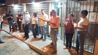 EL NUEVO DIARIO, VALVERDE.- Comunitarios encendieron velas como forma de protesta por el mal estado de las calles San Antonio y J. Ismael Reyes en el municipio de Mao, provincia Valverde.