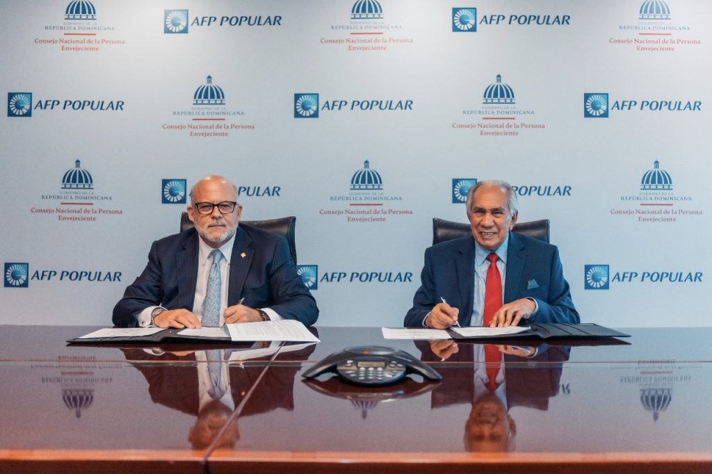 EL NUEVO DIARIO, SANTO DOMINGO. – La Administradora de Fondos de Pensiones Popular (AFP Popular) y el Consejo Nacional de la Persona Envejeciente (CONAPE) firmaron un acuerdo para mejorar las condiciones de vida de los adultos mayores residentes en tres centros de acogida permanente, ubicados en Santo Domingo, San Cristóbal y San José de Ocoa.