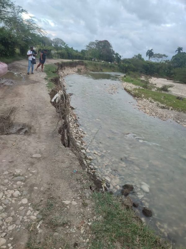 EL NUEVO DIARIO, PUERTO PLATA.- Un derrumbe originado por las crecidas del río Muñoz, amenaza de forma latente con dejar incomunicado al sector Los Pozos en Puerto Plata.
