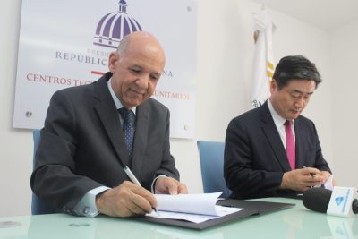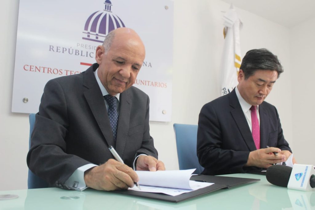 Durante la firma, efectuada en el salón de conferencias de los Centros Tecnológicos Comunitarios, el director Torres agradeció a la organización coreana la iniciativa de colaborar con la juventud dominicana.