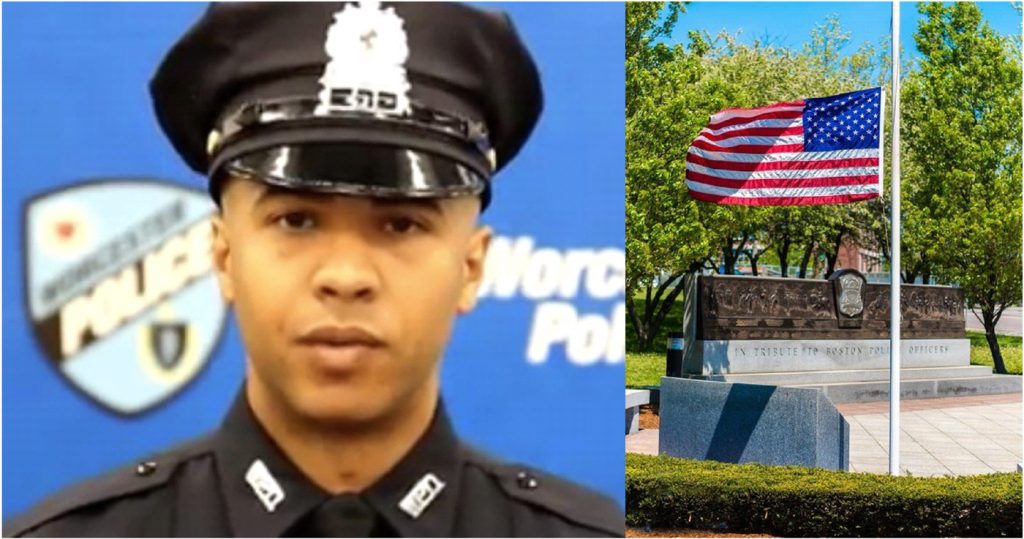 En el edificio del cuartel general de Boston, principal ciudad de ese estado también se iza la bandera de Estados Unidos a media asta en un monumento permanente y dedicado a los policías heroicos.