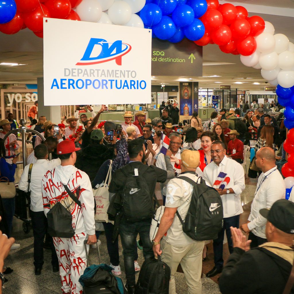 El ritmo del ballet folklórico del Ministerio de Turismo, bailes, aplausos y el ondeo de la enseña tricolor, fueron las primeras impresiones recibidas por los dominicanos a su paso por la rampa de la terminal A, donde en forma organizada un equipo de colaboradores los dirigía a los trámites correspondientes de migración.