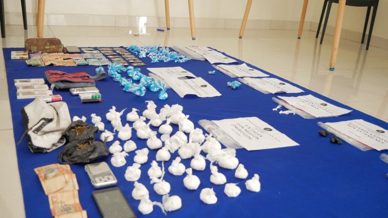 Además de las sustancias ilícitas, fueron ocupados tres balanzas, cuatro celulares, una radio de comunicación, una motocicleta, cigarrillos, un colador, entre otros elementos, utilizados para la dosificación y empaque de las drogas.