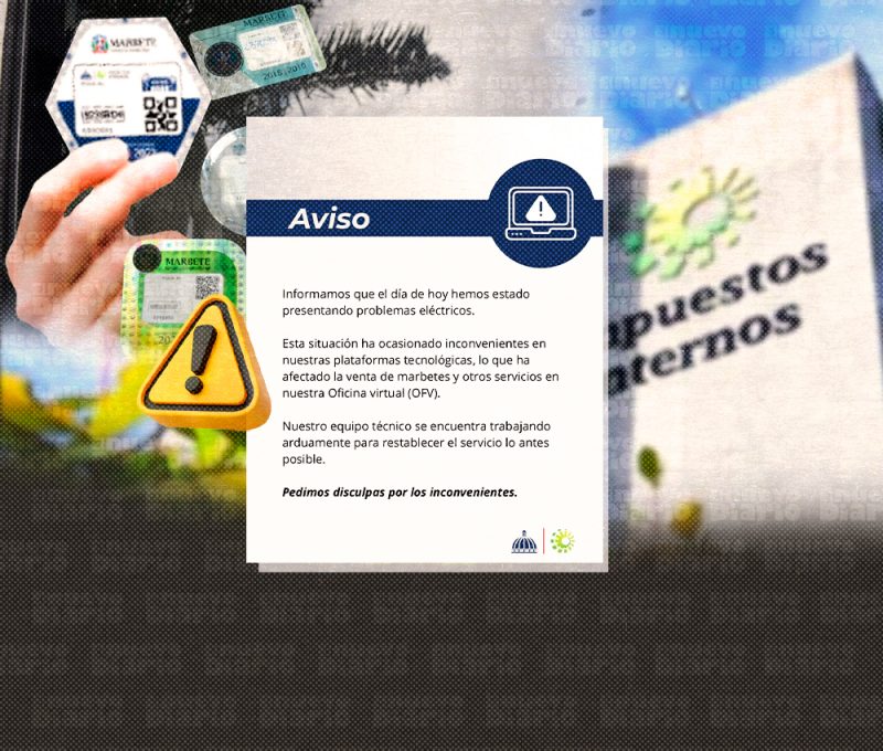 EL NUEVO DIARIO, SANTO DOMINGO.- La Dirección General de Impuestos Internos (DGII) informó sobre algunas fallas técnicas en su plataforma, afectando la compra de los marbetes.