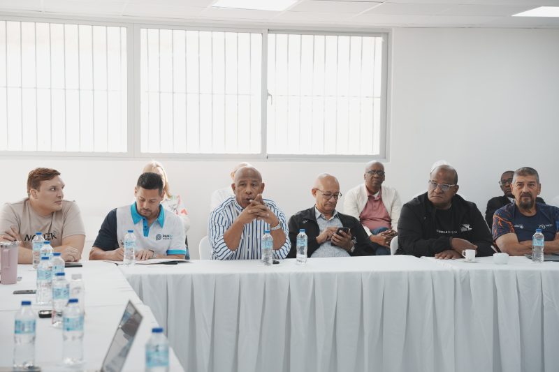 El encuentro se llevó a cabo la mañana del viernes en el salón de actos del Estadio Olímpico Félix Sánchez, donde se expusieron los avances alcanzados en el área técnica de cara a la celebración de Santo Domingo 2026.