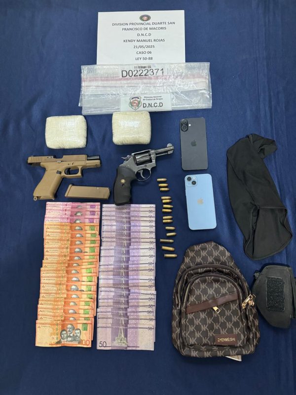 EL NUEVO DIARIO, DUARTE.- La Dirección Nacional de Control de Drogas (DNCD) informó este jueves sobre el arresto de un hombre con más de mil gramos de presunta cocaína y dos armas de fuego, durante un operativo de seguimiento e interdicción realizado en el municipio de San Francisco de Macorís, provincia Duarte.