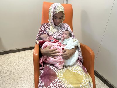 Las gemelas nacieron un mes antes en Mauritania, unidas por la parte superior del abdomen y con un único cordón umbilical; ante la imposibilidad de separarlas en su país, fueron trasladadas en un avión militar medicalizado hasta el centro sanitario barcelonés, donde fueron ingresadas el 26 de octubre.