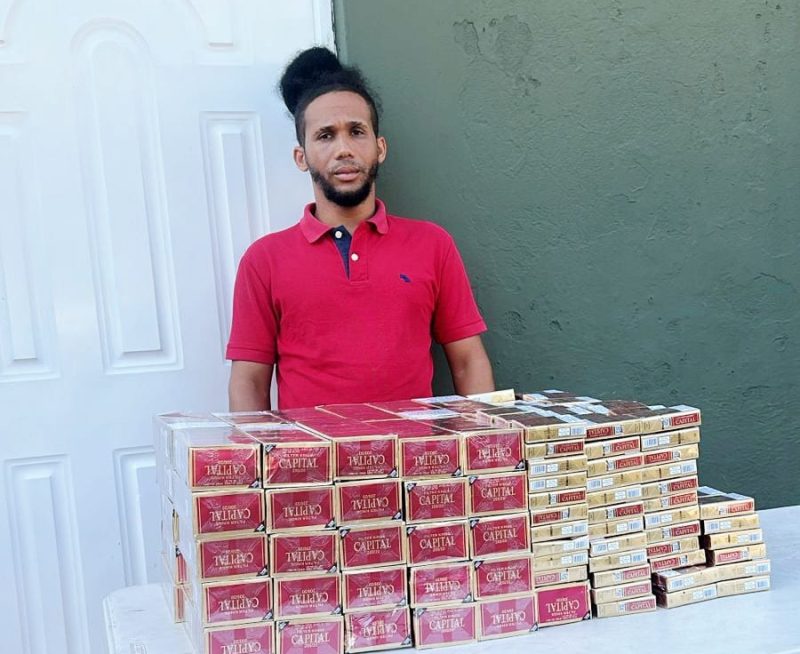Dentro de la yipeta los militares encontraron ocultos entre la carrocería y tapicería de las puertas, 84 paquetes de cigarrillos marca Capital, cada uno con 10 cajetillas de 20 unidades, para un total de 16,800 unidades.