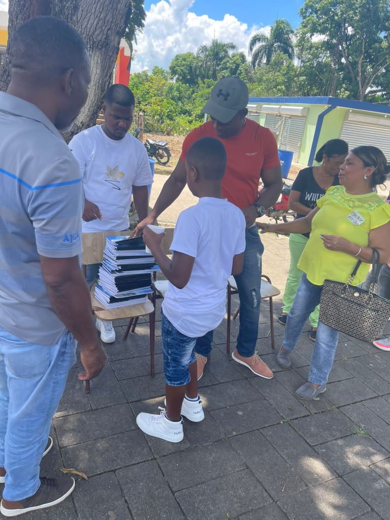 EL NUEVO DIARIO, MONTE PLATA.- El alcalde del Distrito Municipal Don Juan, Lioncito José, benefició a cientos de niños y niñas con la entrega de más de 3 mil cuadernos en esa demarcación de la provincia Monte Plata.