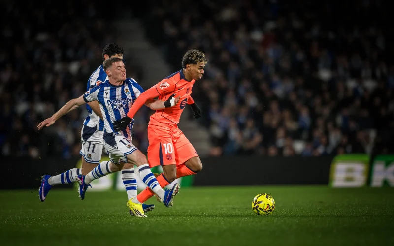 Pocos minutos después, Oyarzabal rozó el 3-1 con un testarazo que se marchó a un par de palmos del palo diestro de Joan García. En el 76, Cubarsí sacó bajo palos un remate de Zubeldia que iba para dentro.