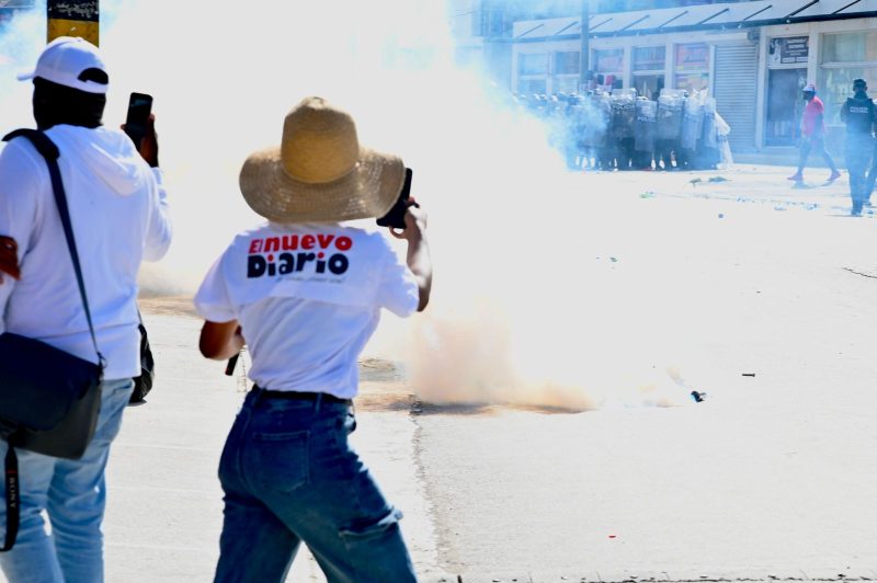 El incidente comenzó cuando agentes de la Policía Nacional lanzaron bombas lacrimógenas para dispersar la mayoría de manifestantes, artefactos que también afectaron a miembros de la prensa, como al equipo de El Nuevo Diario que se trasladó al lugar, conformado por la periodista Rosa Galán, el fotorreportero Félix Lara y el chofer Rafael Pérez.